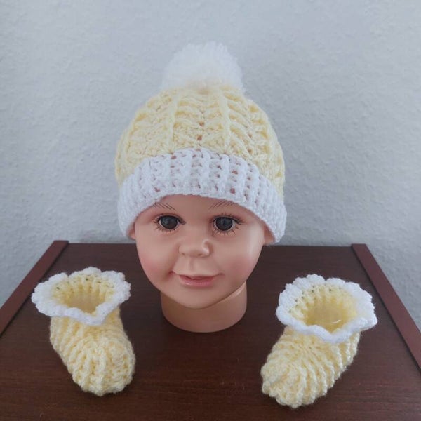 Entdecken Sie unser zauberhaftes Set aus gehäkelter Babymütze und passenden Babyschuhen – das perfekte Accessoire für die kleinen Entdecker!