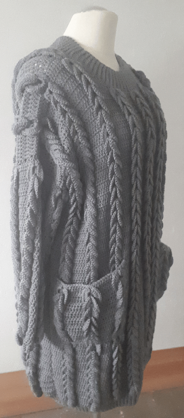 Pulloverkleid mit falschem Zopfmuster und Taschen (Gr. 44-48)